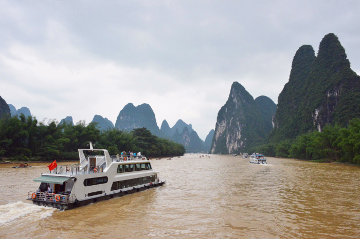 隨著第二日早餐后前往竹江碼頭的大巴車緩緩啟動(dòng),期待已久的船游漓江之旅正式拉開帷幕。跟隨導(dǎo)游的腳步,建藝人有序的登上游輪。望著舷窗外微波蕩漾的漓江水,憧憬著即將到來的美麗山水景色,建藝人無比歡欣鼓舞,大家有說有笑,相機(jī)和手機(jī)更是早早就準(zhǔn)備好,只待如畫般的風(fēng)景出現(xiàn)在眼前。