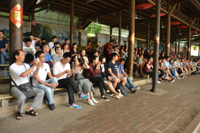 帶著依依不舍的心情,下午四時(shí)許,建藝人離開了訾洲公園,前往首日下榻的賓館歇息。一日的游覽雖然略帶疲憊,但所有人的心情顯然格外興奮。在晚餐環(huán)節(jié),大家開懷暢飲,或談?wù)撀猛舅姡蚧匚懂?dāng)日趣聞,輕松愉悅的氛圍始終縈繞在建藝人的心頭,而更多的,則是對(duì)第二天漓江之旅的憧憬。