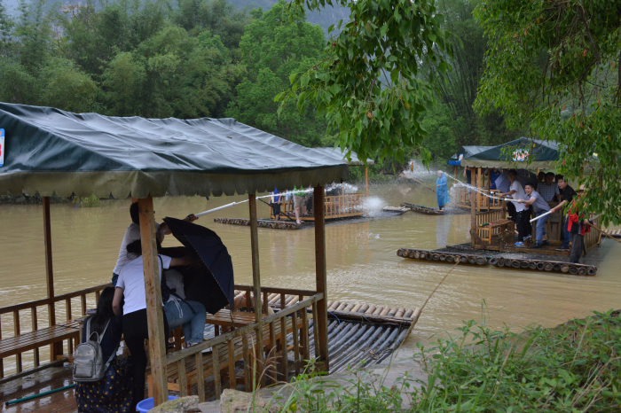 在本次旅程的最后一日,建藝人告別了西街,來到了詩情畫意的遇龍河。在這里,大家乘坐極具當(dāng)?shù)靥厣闹衽拍媪鞫希俅晤I(lǐng)略別樣的水上之旅。但與前一天在漓江上的船游有所不同的是,這次竹排之旅加入了更多互動(dòng)環(huán)節(jié)——每艘竹排上均置備了簡易水槍,兩排之間可以盡情射水游戲。只見建藝人以單支竹排為單位,開始了你來我往的“水上大戰(zhàn)”,歡笑聲與尖叫聲此起彼伏,山水之間,留下了建藝人的歡樂,更見證了建藝人彼此的情誼……