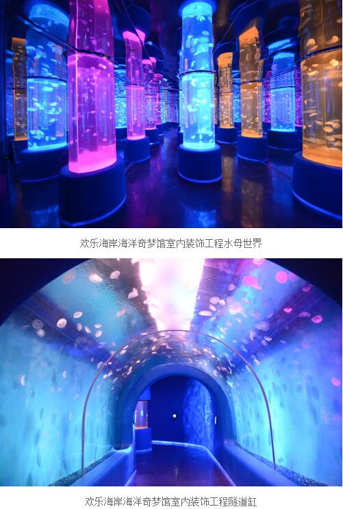 歡樂海岸位于深圳灣商圈核心,占地面積約125萬平方米,是集文化、生態、旅游、娛樂、購物、餐飲、酒店、會所等多元業態于一體的都市娛樂目的地,是深圳市致力打造的高品質人文旅游、國際創意生活空間中心。建藝集團承建了海洋奇夢館室內裝飾裝修以及水電、空調等施工內容。本工程天花和墻面全部采用異型GRG裝飾板,以滿足設計對造型的要求。地面鋪貼新型建筑板材——SRC增強玻璃纖維改良水泥板,電氣安裝則全部采用LED節能燈具,通過光與影的交錯,營造出如夢似幻的海底世界奇觀。