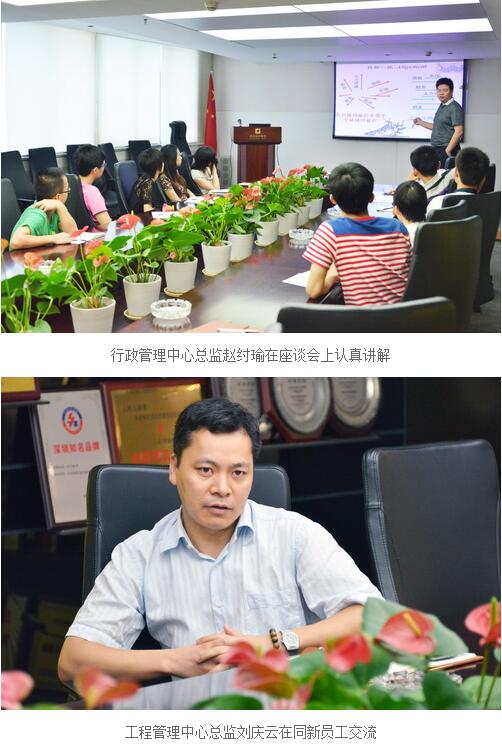 工程管理中心總監(jiān)劉慶云也在會(huì)上給新員工介紹了公司發(fā)展戰(zhàn)略,并根據(jù)公司對(duì)員工的素質(zhì)要求,對(duì)每一位新員工提出了殷切的希望。他希望新員工們能夠珍惜建藝這個(gè)平臺(tái),并充分利用現(xiàn)有資源,依托建藝這座寬廣的舞臺(tái)實(shí)現(xiàn)自己的人生目標(biāo),證明自己的人生價(jià)值。最后,人力資源部副總經(jīng)理張維和大家一起交流了工作經(jīng)驗(yàn),他從自身的經(jīng)歷經(jīng)驗(yàn)出發(fā),詳細(xì)的幫大家答疑解惑,鼓勵(lì)大家在工作中發(fā)揮自己的創(chuàng)新思維,在不斷的學(xué)習(xí)中提高自己的工作能力。