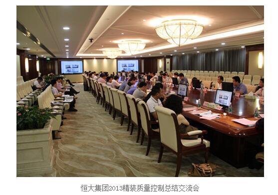 本次會議主要議題是恒大項目精裝修工程質(zhì)量控制,會議由恒大地產(chǎn)集團(tuán)副總裁秦立永主持,常務(wù)副總裁洪昌龍到會并做了有關(guān)精裝修工程質(zhì)量控制的重要講話。會上,恒大地產(chǎn)集團(tuán)公布了2013年第三季度的精裝修施工單位排名,我集團(tuán)公司排名有較大上升,獲得了恒大地產(chǎn)集團(tuán)領(lǐng)導(dǎo)的認(rèn)同和贊許。