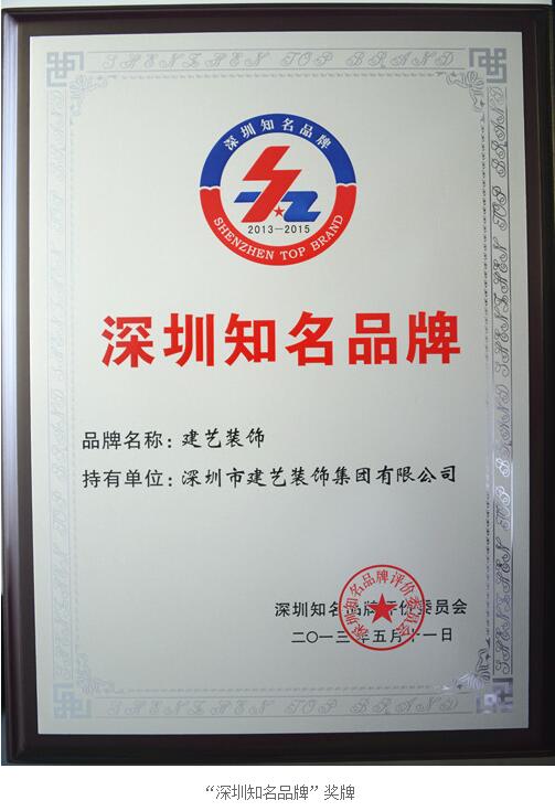 深圳知名品牌作為打造深圳質(zhì)量的主力軍,諸多企業(yè)成為國內(nèi)甚至國際上的排頭兵。建藝集團“建藝裝飾”品牌2006年被評選為“深圳知名品牌”,憑借著卓越的成績一直保持著該項殊榮。建藝集團自成立以來,秉承以德為先,誠信為本,構(gòu)筑精品為目標的宗旨,一直快速發(fā)展,在建筑裝飾領(lǐng)域樹立了良好的口碑與形象,為深圳的經(jīng)濟社會發(fā)展做出了突出貢獻。