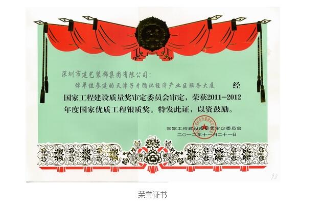 日前,建藝集團承建的天津子牙循環經濟產業區服務大廈項目獲評為2011-2012年度國家優質工程銀質獎。