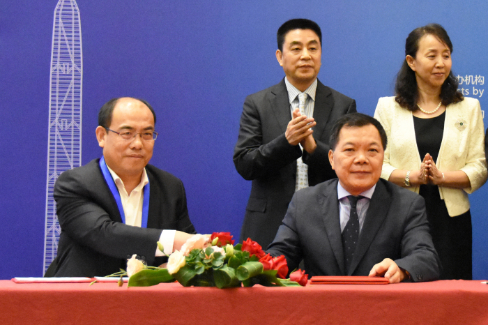 建藝集團董事長劉海云同中國建筑馬來西亞公司書記王瑞明就當地項目合作事宜簽署戰略合作協議。
