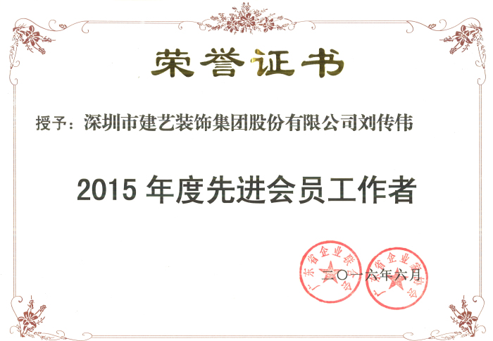 建藝集團企業(yè)文化部總經(jīng)理劉傳偉獲得的榮譽證書