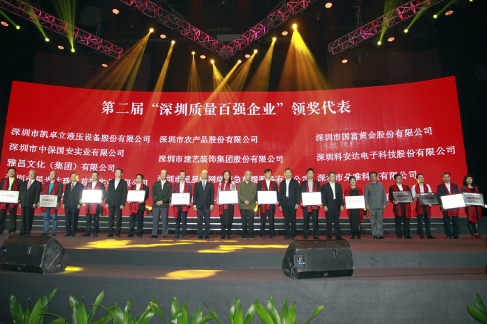 建藝集團喜獲“2016第二屆深圳質量百強企業”榮譽獎牌