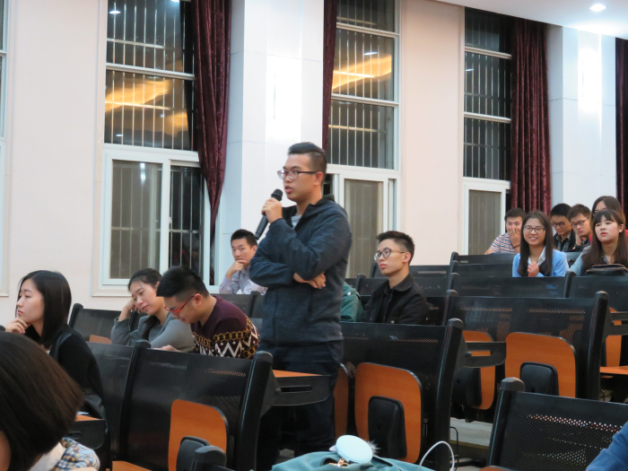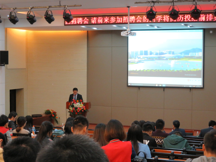 參加本次宣講會約百余人,現場氣氛非常熱烈,在宣講會上:副總裁趙紂瑜先生為同學們就公司的發展歷程、業務領域及分布、資質榮譽、科技創新、人才培養體系、企業文化等方面做了詳細的講解。緊接著,副總裁劉慶云先生就公司工程項目的業務情況為現場的同學做了詳細的介紹。在現場提問環節,同學們踴躍提問,積極互動,讓現場的同學們對建藝有了更多的了解,并進一步明確了求職意向。