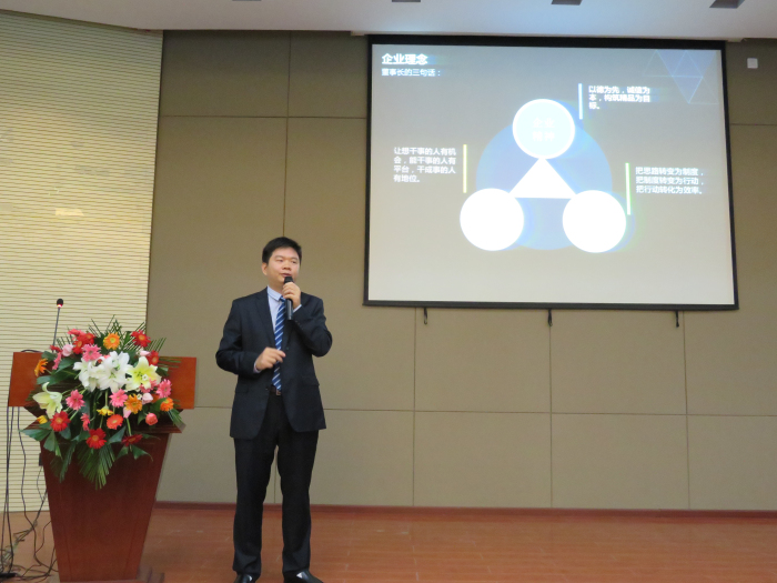 宣講會開始前,人力資源部總經理王久奎介紹本次校招的流程及面試官組成