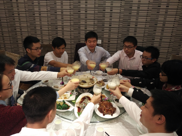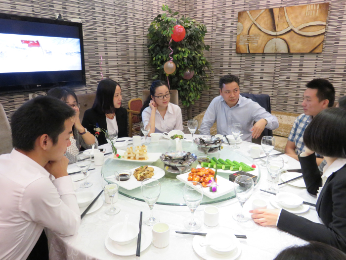 簽約儀式后,我公司招聘團隊為簽約人員在武漢大學附近酒樓舉行錄用交流會,交流會上,大家暢所欲言,舉杯共祝建藝集團蓬勃發展,2017相約建藝!