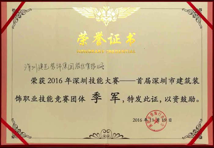 此次“2016年深圳技能大賽暨首屆深圳市建筑裝飾職業技能競賽”,是深圳裝飾行業和企業、員工的一次盛會。建藝團隊能夠載譽而歸,是集團“以德為先,誠信為本,構筑精品為目標”的企業宗旨的一次展現,也是集團員工努力錘煉工作技能、貫徹“工匠精神”的體現。相信我們會憑借自己的精湛技藝,在未來為社會奉獻更多的精品項目。