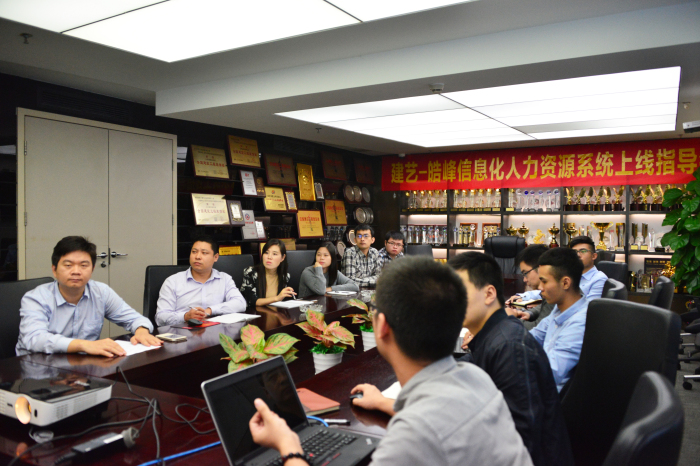 11月23日下午,建藝集團信息化系統(tǒng)管理項目——人力資源系統(tǒng)上線指導會在集團總部會議室舉行。本次指導會由集團副總裁趙紂瑜、人力資源部總經(jīng)理王久奎、信息技術部副總經(jīng)理王彬等領導帶領人力資源部和信息技術部員工一同參加。指導會上,深圳市皓峰通訊技術有限公司實施經(jīng)理劉彬擔任主講,并就信息化人力資源系統(tǒng)中招聘、培訓、員工關系、考勤管理、績效考核等模塊展開詳細的操作指導和系統(tǒng)優(yōu)化討論。