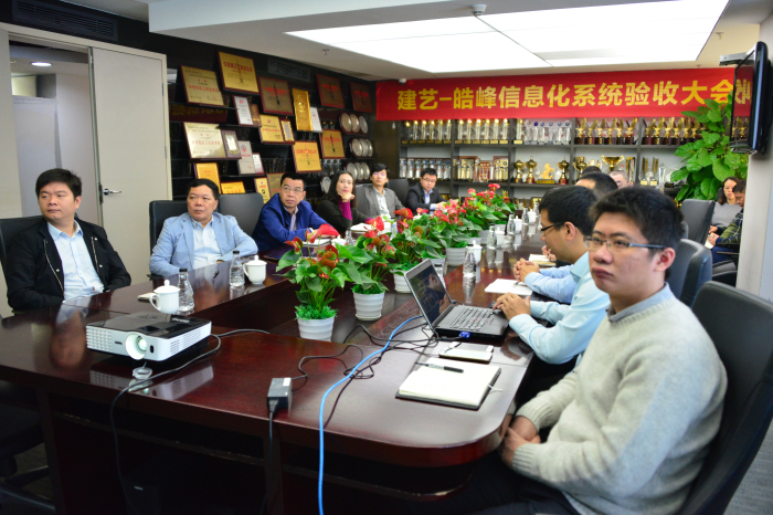 2017年01月19日,建藝集團信息化系統管理項目——第一期驗收報告會在集團總部會議室舉行。本次報告會由建藝集團董事長兼總裁劉海云、副總裁趙紂瑜、總工程師田力等領導參加。報告會首先由皓峰通訊劉棟華副總經理對建藝信息化系統做全面的驗收報告,從項目的具體實施、項目成果、各模塊培訓等方面做了詳細講解,并對后期的產品模塊及進一步的合作方向做了細致的闡述。皓峰通訊毛總對劉董事長的大力支持表示感謝,對未來與建藝的進一步戰略合作充滿信心。