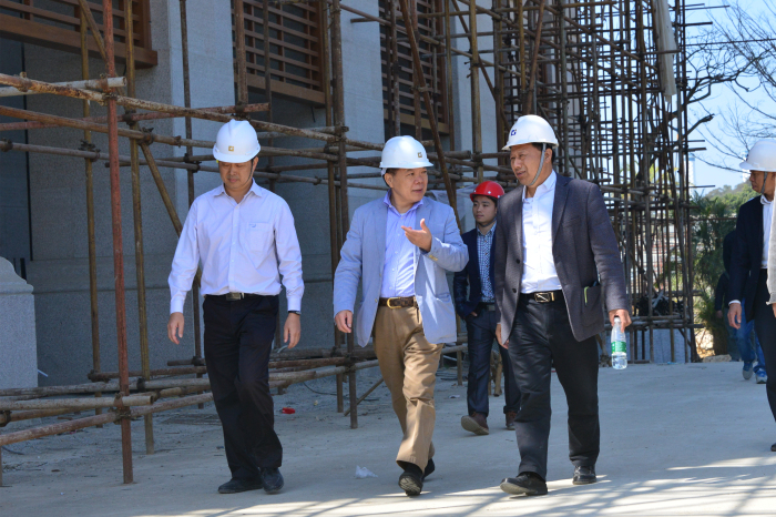 2月16日上午,建藝集團董事長兼總裁劉海云親自率領集團董事、副總裁顏如珍,總工程師田力,副董事長劉珊,監事會主席陳景輝,設計研究院院長郭杰,財務總監溫良茂,成控評估中心總監涂國發,工程總監涂俊峰,總裁助理顏健昌,副總工程師張偉等高管,驅車來到深圳佳兆業金沙灣萬豪度假酒店項目實地考察。建藝集團工程管理中心工程三部總經理李衛鋒、金沙灣項目現場負責人呂忠新以及工程管理中心鐘樹宏、廖嘉維、樊華等熱情迎接劉董一行并陪同考察。