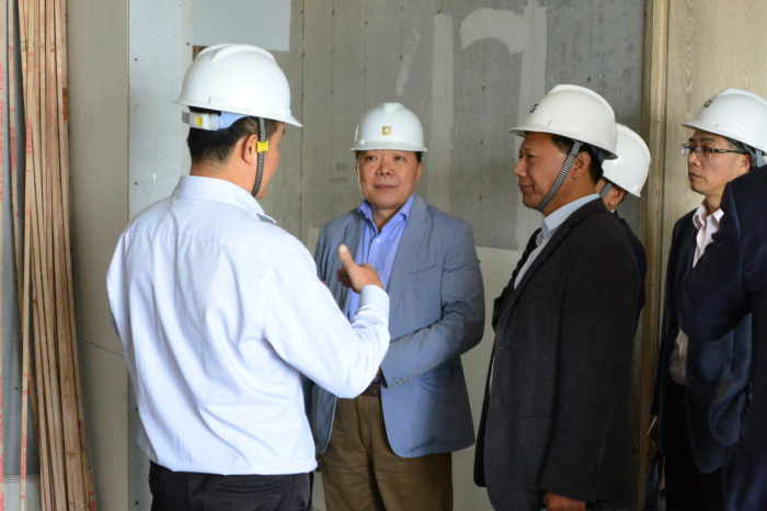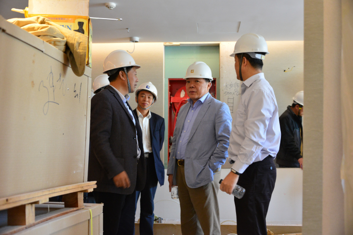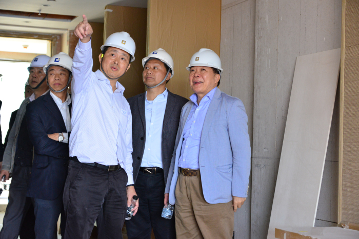 在現場,劉海云董事長一行詳細了解了項目整體施工情況,并對客房臥室、衛生間、通道等區域的實際裝修進展情況進行了仔細考察。劉董在考察中要求項目相關人員要充分發揚建藝人一貫的嚴謹高效作風,尤其要做好細節把控工作,務必確保施工品質萬無一失,同時總工辦相關領導在節點前務必做好監督指導工作,對有問題的地方要及時會同項目人員在施工現場就地處理,上下齊心,確保工程進度及質量。
