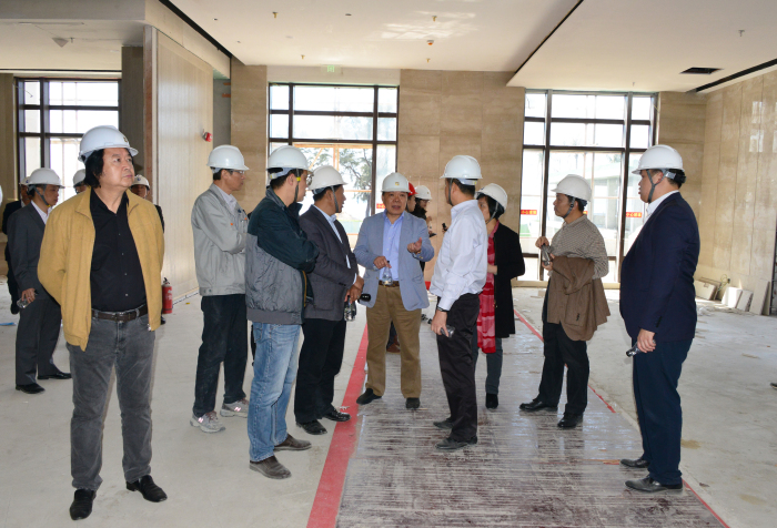 工程管理中心鐘樹宏(左)向劉海云董事長講解施工工藝