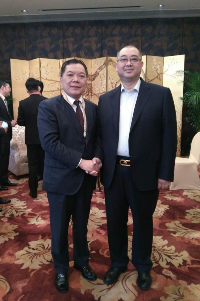 建藝集團董事長兼總裁劉海云與恒大集團董事局主席許家印(右)合影
