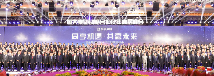 劉海云董事長等與會企業領導與許家印主席等恒大高管在峰會上合影