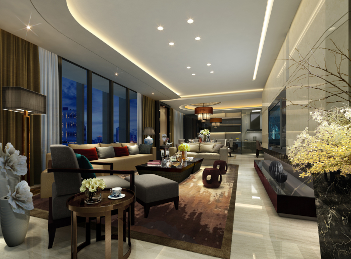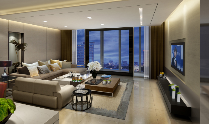 建藝集團(tuán)獲獎(jiǎng)作品《釜山LCT海云臺(tái)樣板房》主客廳效果圖