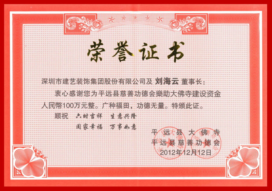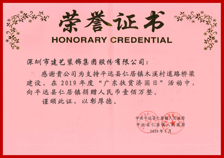 除了經(jīng)濟投資與商業(yè)合作,建藝集團、建藝控股董事會主席劉海云多年來始終如一地向平遠輸出愛心,關(guān)心、關(guān)懷著這片土地的民生保障與基礎(chǔ)建設(shè),并力所能及地支持當?shù)胤鲐毠ぷ鳌T缭?012年,劉海云董事長就資助100萬元善款用于平遠縣大佛寺建設(shè);在2019年度“廣東扶貧濟困日”活動中,劉海云董事長再次伸出援手,向平遠縣仁居鎮(zhèn)捐贈善款100萬元,用于支持當?shù)氐缆窐蛄航ㄔO(shè),為當?shù)匕傩彰撠氈赂回暙I力量;2020年,當新冠肺炎疫情席卷平遠縣境之時,建藝集團更是遵照劉海云董事長指示,第一時間向平遠縣紅十字會援助1萬只口罩,以解當?shù)匾咔榉揽禺攧?wù)之急,用實實在在的愛心,為平遠構(gòu)筑健康安全長城盡一份力……