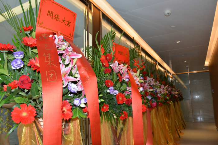 建藝集團、建藝控股董事會主席劉海云向潘總送上開業賀禮