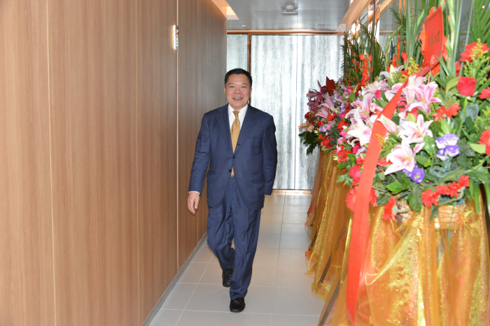 建藝集團、建藝控股董事會主席劉海云面帶微笑步入開業典禮現場