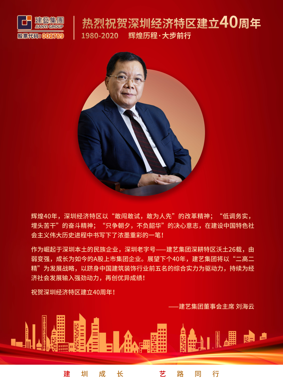 從1980年特區成立,到2020年深圳作為中國特色社會主義先行示范區及粵港澳大灣區“排頭兵”屹立于世界一流城市之林。40年間,無數如劉海云一樣的創業者勇立潮頭,在這片改革熱土上深耕不輟,創造了偉大價值;無數如建藝集團一樣的民營企業奮勇拼搏,在這方經濟“前線”銳意前行,取得了驚人成就。這一切,都離不開改革開放政策的恩惠;這一切,都依賴于特區開放、包容、與世界接軌的博大胸襟。
