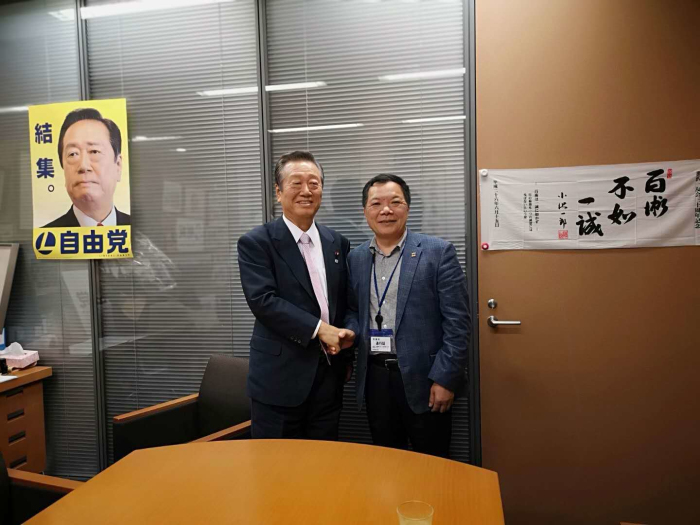 小澤一郎議員(左一)熱情接見劉海云董事長