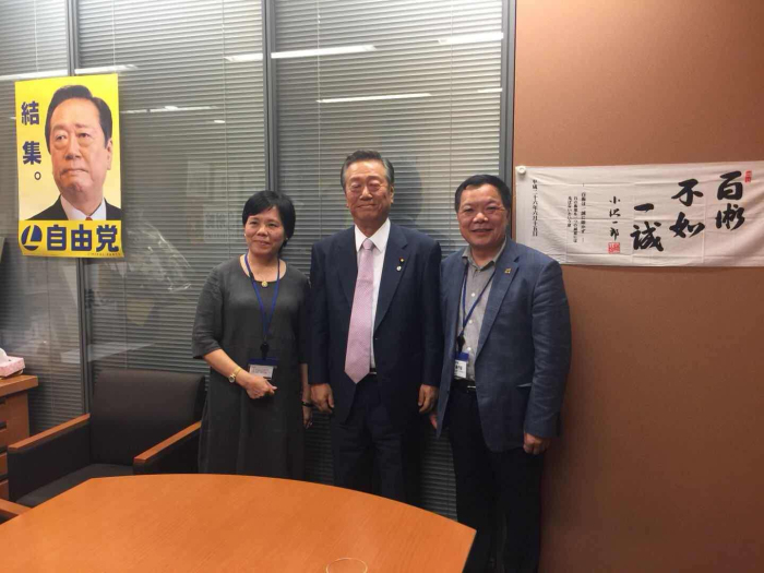 劉海云董事長(右一)、顏如珍副總裁(左一)與小澤一郎議員合影