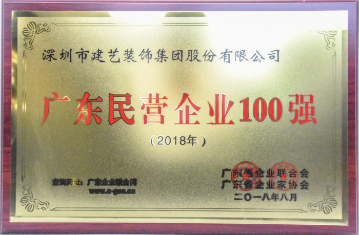 建藝集團榮獲的廣東民營企業100強獎牌