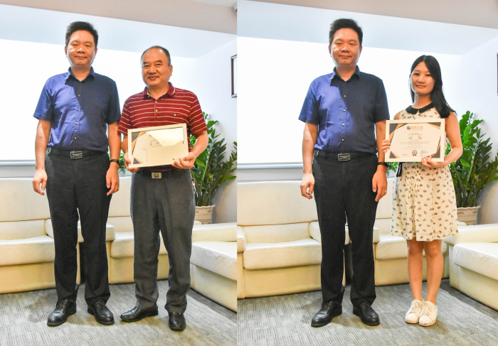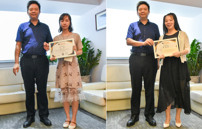 趙總向“建藝之星”頒發(fā)證書(shū)
