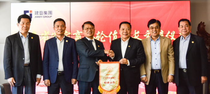 廣東省客家商會(huì)輪值會(huì)長(zhǎng)交接儀式在建藝集團(tuán)舉行——?jiǎng)⒑T贫麻L(zhǎng)交棒第三期輪值會(huì)長(zhǎng)