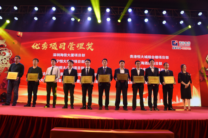劉珊副董事長(右一)為建藝集團(tuán)優(yōu)秀項(xiàng)目管理獎(jiǎng)獲得者頒獎(jiǎng)