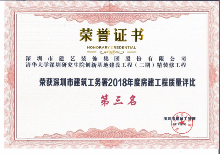 2018年度深圳市建筑工務署工程質量評比第三名(建藝集團)