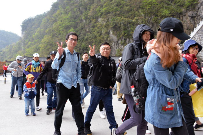 第三站,員工們游覽了張家界國家森林公園,感受了位于袁家界景區、被譽為“中國埃菲爾鐵塔”的“百龍天梯”。該電梯位于山谷之間,總高度326米。在電梯上升過程中,游客可觀群山聳立,懸崖絕壁,乃自然景觀與人造景觀的完美結合。