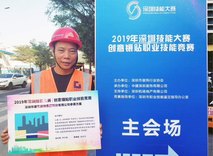 為全面貫徹落實黨的十九大提出的“建設知識型、技能型、創新型勞動者大軍,弘揚勞模精神和工匠精神,營造勞動光榮的社會風尚和精益求精的敬業風氣”要求,加快培養和選拔高技能人才,深圳市裝飾行業協會于近日在深圳市寶安區領航城領逸大樓舉辦2019年深圳技能大賽——創意鑲貼職業技能競賽。建藝集團作為深圳市裝飾行業協會常務副會長單位,積極響應競賽號召,組織內部人員參賽。其中,工匠徐志華突圍近百人初賽,代表集團公司出征本次職業技能競賽決賽。