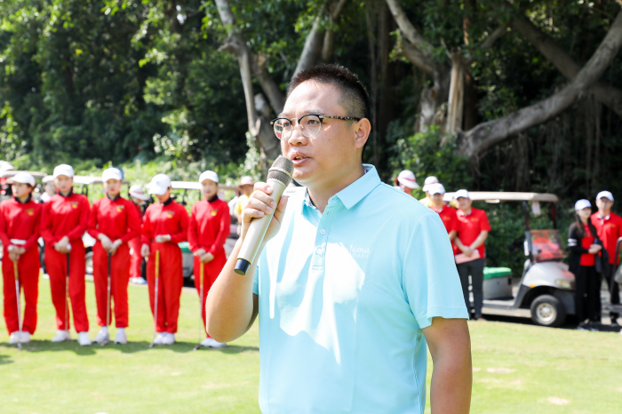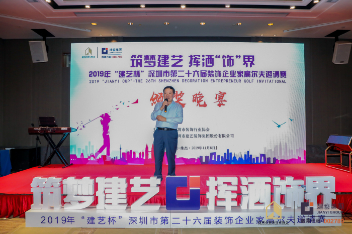 建藝集團董事長兼總裁劉海云致歡迎辭。他對各位領導、嘉賓、企業家朋友們的到來表示熱烈歡迎,并對一直以來支持、關心、推動建藝發展的深圳市裝飾行業協會以及行業同仁們表示了衷心感謝。他表示,作為深圳裝飾大家庭中的一員,建藝集團未來會更加積極響應協會的號召,以身作則,團結聯絡全行業各企業,增進友誼,共謀發展,為同仁交流以及行業發展作出更多貢獻。最后,他預祝參賽的企業家朋友們盡情揮桿,打出好成績,賽出高水平,取得好名次,并祝福深圳市裝飾行業未來蓬勃興旺,宏圖大展!
