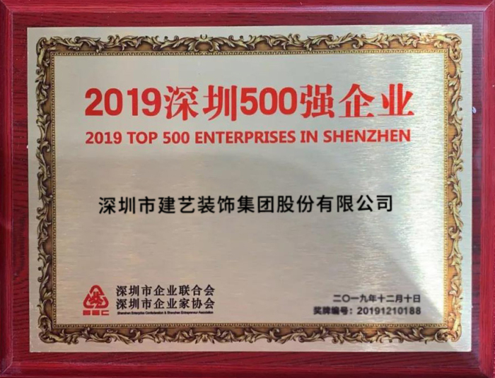 【藝動(dòng)態(tài)】重磅:2019深圳500強(qiáng)企業(yè)榜單出爐!建藝集團(tuán)榮譽(yù)入選