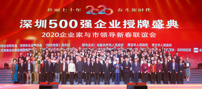 弘揚(yáng)偉大奮斗精神共謀民族復(fù)興,勇?lián)刃惺痉妒姑硡^(qū)輝煌。日前,由深圳市企業(yè)聯(lián)合會(huì)/深圳市企業(yè)家協(xié)會(huì)、《時(shí)代商家》雜志社主辦的“壯麗七十年,奮斗新時(shí)代——深圳500強(qiáng)企業(yè)授牌盛典暨2020企業(yè)家與市領(lǐng)導(dǎo)新春聯(lián)誼會(huì)”在深圳灣體育中心舉行。建藝集團(tuán)榮膺2019深圳500強(qiáng)企業(yè),深圳質(zhì)量百?gòu)?qiáng)企業(yè)。