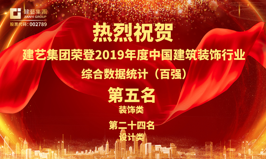 熱烈祝賀建藝集團榮登中國建筑裝飾行業百強企業第五名
