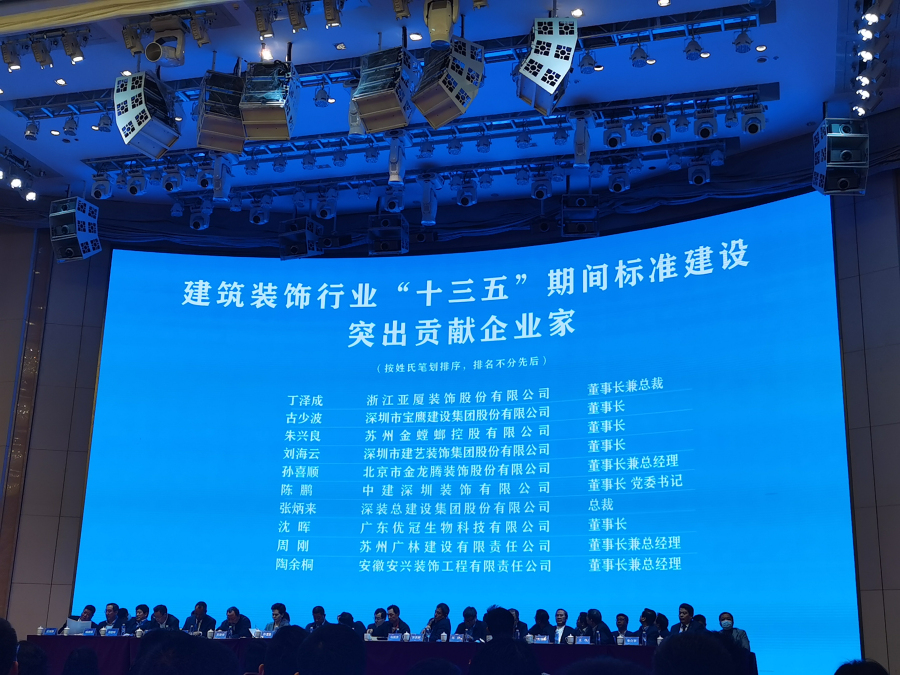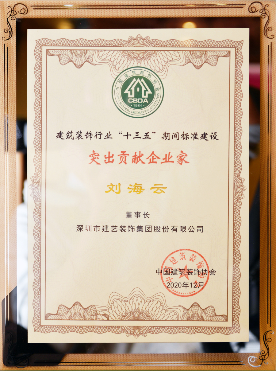 建藝集團董事會主席劉海云獲評為“建筑裝飾行業‘十三五’期間標準建設突出貢獻企業家”
