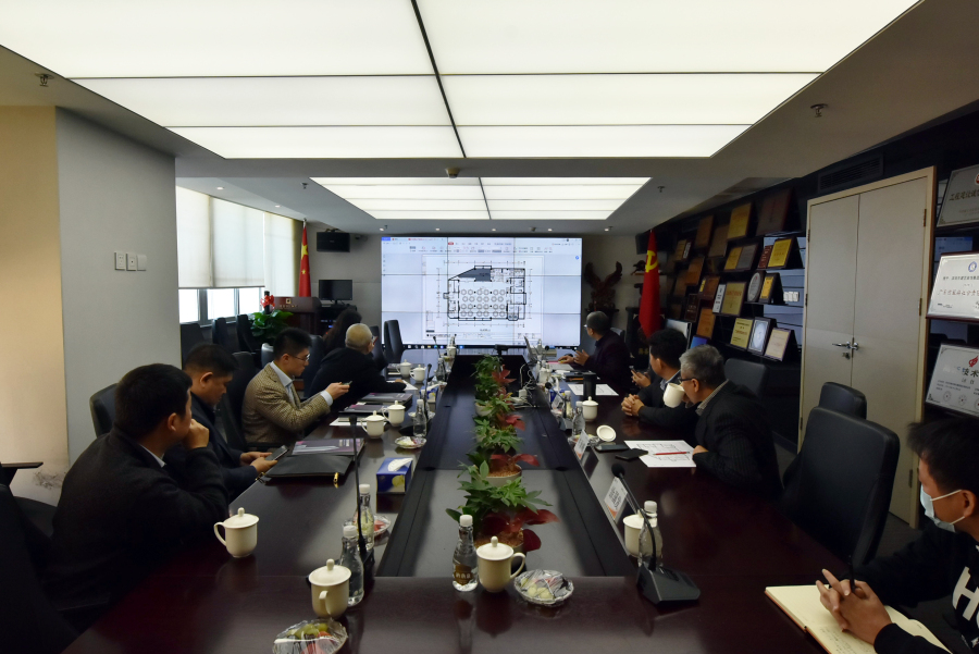 會談過后,張董一行應邀來到建藝總部會議室,建藝集團設計研究院楊圣滔副院長著重向張董一行介紹講解項目平面優化設計、初期方案概念與設計。在聽取完楊圣滔副院長的講解后,張董對建藝集團前期工作,特別是高效率完成室內裝飾方案設計予以充分肯定和表揚,項目明確為尊貴、高雅、超白金國際五星級酒店定位。期間,張董一行還與劉海云主席就建筑室外景觀園林、建筑各專業綜合改造及室內外裝飾等事宜達成合作意向。