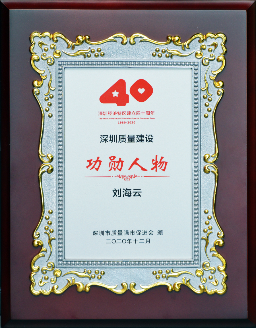 深圳經(jīng)濟特區(qū)建立40周年深圳質(zhì)量建設(shè)功勛人物——劉海云