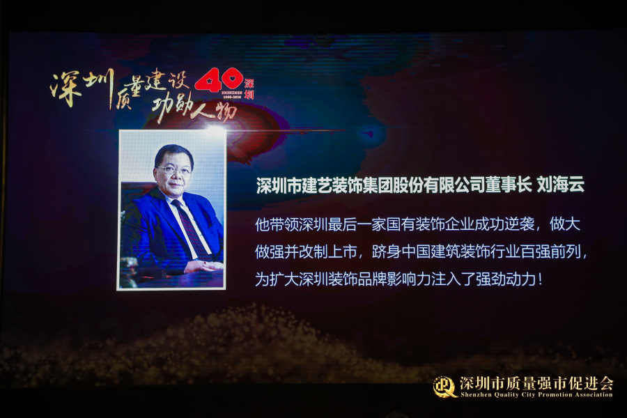作為榮膺“功勛人物”的企業(yè)家之一,“深商風云人物”——劉海云主席長期以來深耕深圳質(zhì)量建設(shè)。大會現(xiàn)場這樣評價劉海云主席:“他帶領(lǐng)深圳最后一家國有裝飾企業(yè)成功逆襲,做大做強并改制上市,躋身中國建筑裝飾行業(yè)百強前列,為擴大深圳裝飾品牌影響力注入了強勁動力。”