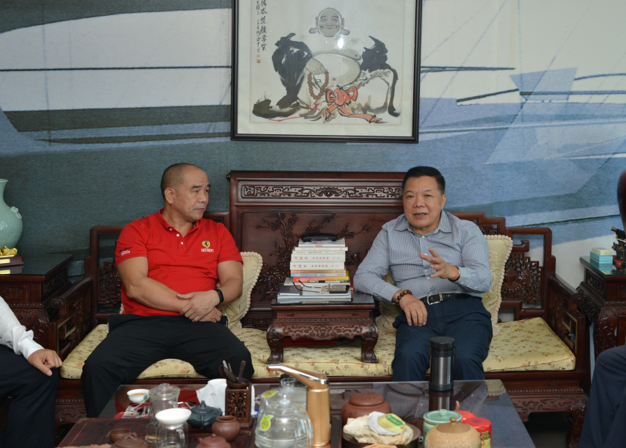 10月19日上午,廣東省興寧商會葉遠新會長率隊來到常務副會長單位——建藝集團走訪。商會常務副會長、建藝集團董事長劉海云熱情迎接葉會長一行,雙方在辦公室進行了親切會談。