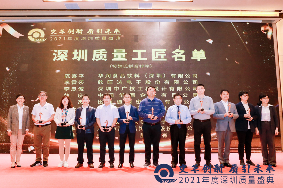 日前,由深圳市質量協(xié)會主辦的“2021年度深圳質量盛典”(簡稱“質量盛典”)在南山區(qū)隆重舉行。本屆質量盛典以“變革創(chuàng)新,質引未來”為主題,現(xiàn)場頒發(fā)了“深圳質量工匠”等獎項。