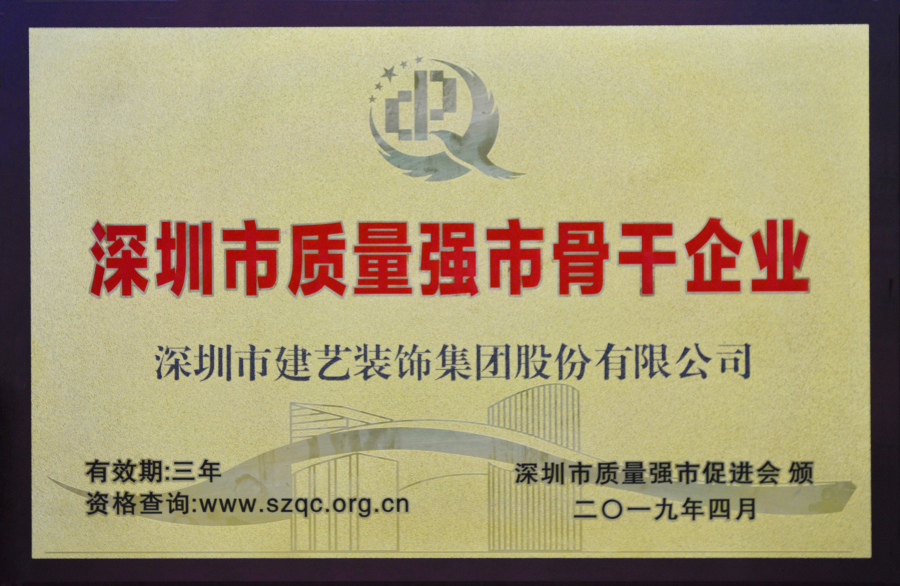 建藝集團質量誠信建設部分成果:深圳市質量強市骨干企業(yè)