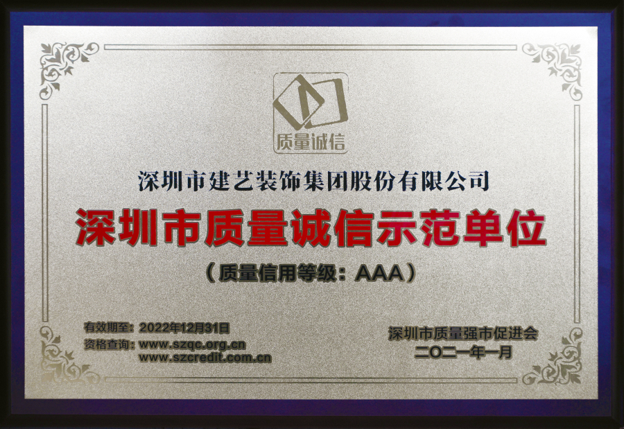 建藝集團質量誠信建設部分成果:深圳市質量誠信示范單位
