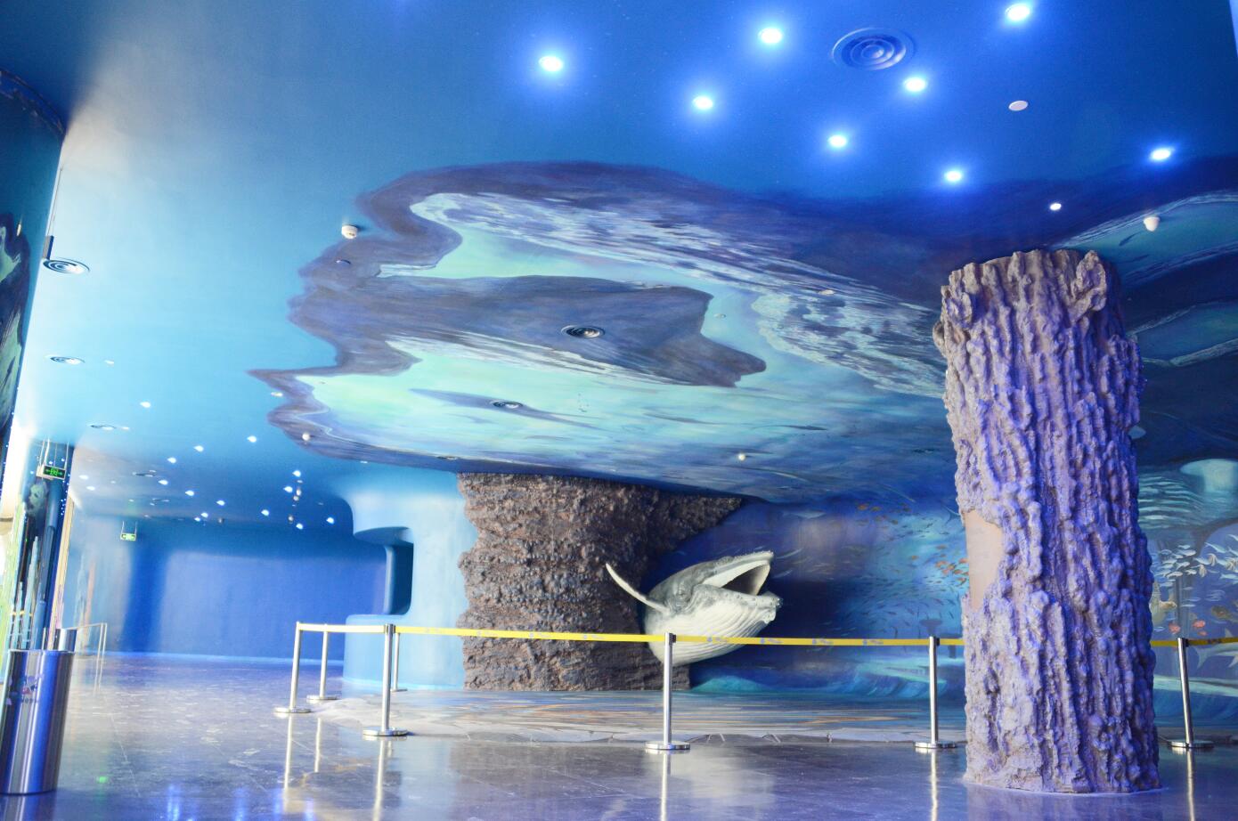 深圳歡樂海岸海洋奇夢館位于歡樂海岸購物中心二樓西側(cè),是一個集科普教育、欣賞娛樂為一體的多功能水族館。館內(nèi)設(shè)置了潛入深海區(qū)、珊瑚及水母活體展示區(qū)、珊瑚礁3D劇場、奇夢屋、海獅劇場、生態(tài)教室等主題區(qū)域,造型奇異多變,或為燈光掩映,或為立體投影,或為明暗變幻,讓游客在感受震撼觀賞體驗的同時,也學習到了豐富的海洋知識。本工程應用的異型GRG天花及墻面裝飾板及LED高效節(jié)能燈具的應用獲得過“2014年全國建筑裝飾行業(yè)科技創(chuàng)新成果獎”。