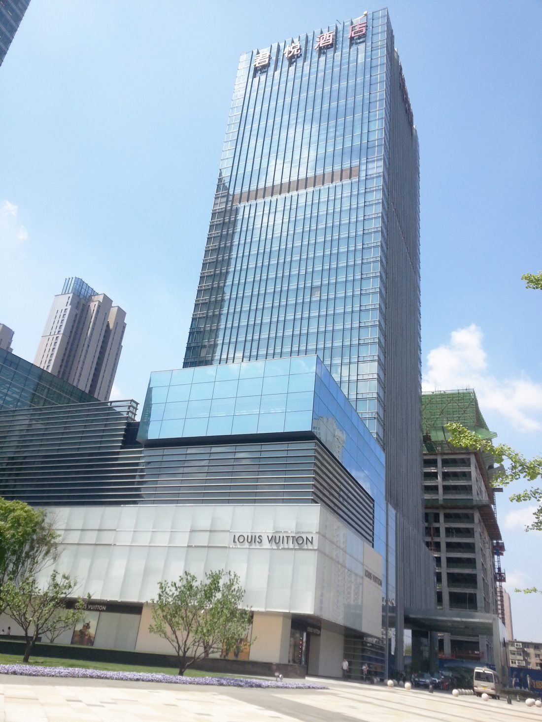 沈陽華潤中心是一個多功能的綜合項目,集休閑、購物、文化娛樂、特色餐飲、五星級酒店及高檔住宅等多種功能于一體,華潤中心二期(君悅酒店)是華潤中心一期萬象城的延伸與補充,君悅酒店因其大膽新穎的建筑設(shè)計,在餐廳、酒吧和酒店負一層等場所所體現(xiàn)的華美而富有創(chuàng)新的理念而聲名遠揚。本工程采取了多項國內(nèi)先進的新技術(shù)、新工藝,其中,“高層建筑降板區(qū)防水施工工藝”和“輕鋼龍骨隔音墻施工工藝”獲得了“2014年全國建筑裝飾行業(yè)科技創(chuàng)新成果獎”,并且實用新型專利“一種帶有角鋼轉(zhuǎn)換層的吊頂結(jié)構(gòu)”已獲授權(quán)。